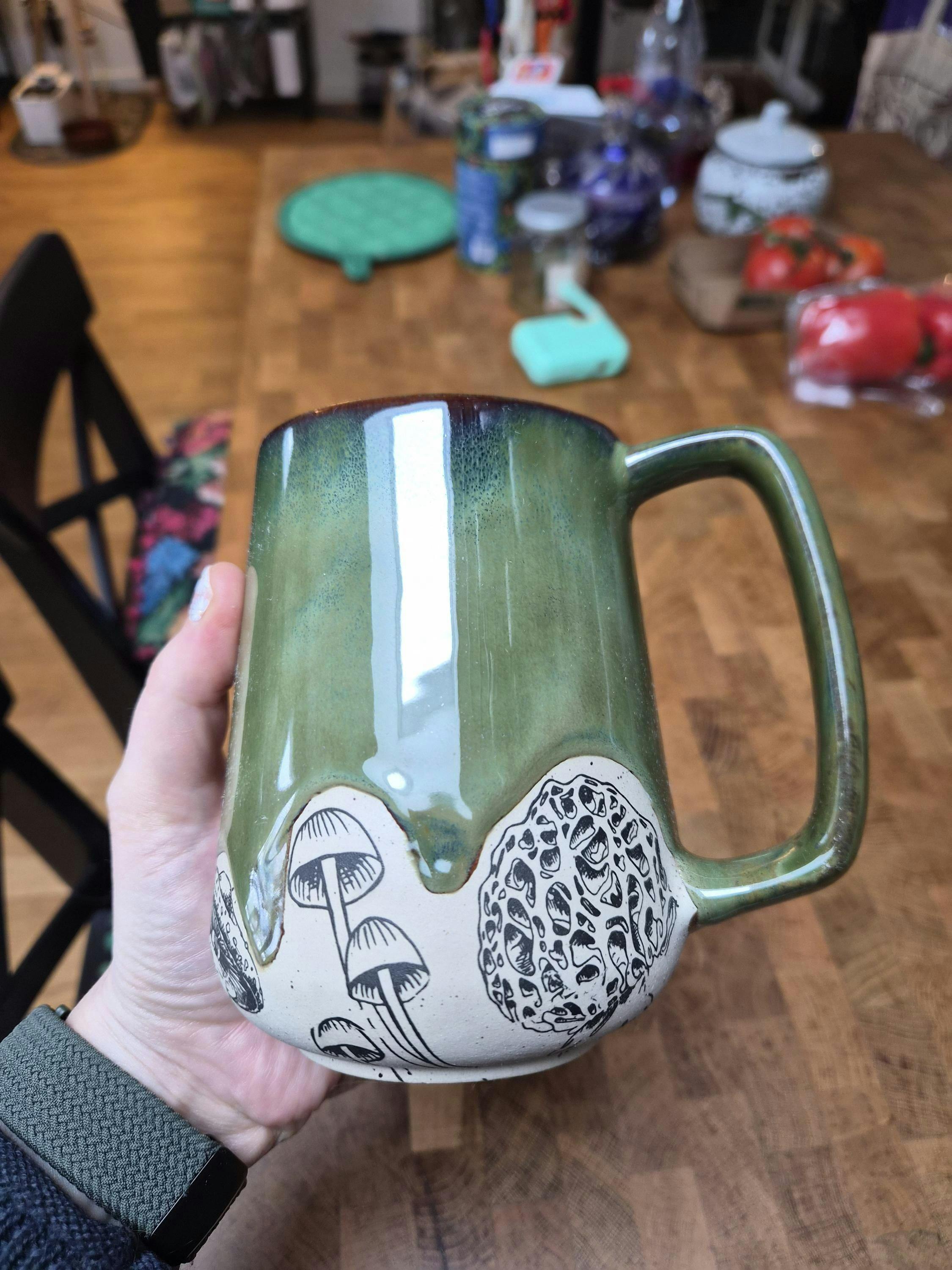 As a mushroom enthusiast I am in love with this mug! Beautiful colours and really well crafted. It arrived faster than I thought it would. Already one of my favourite mugs!